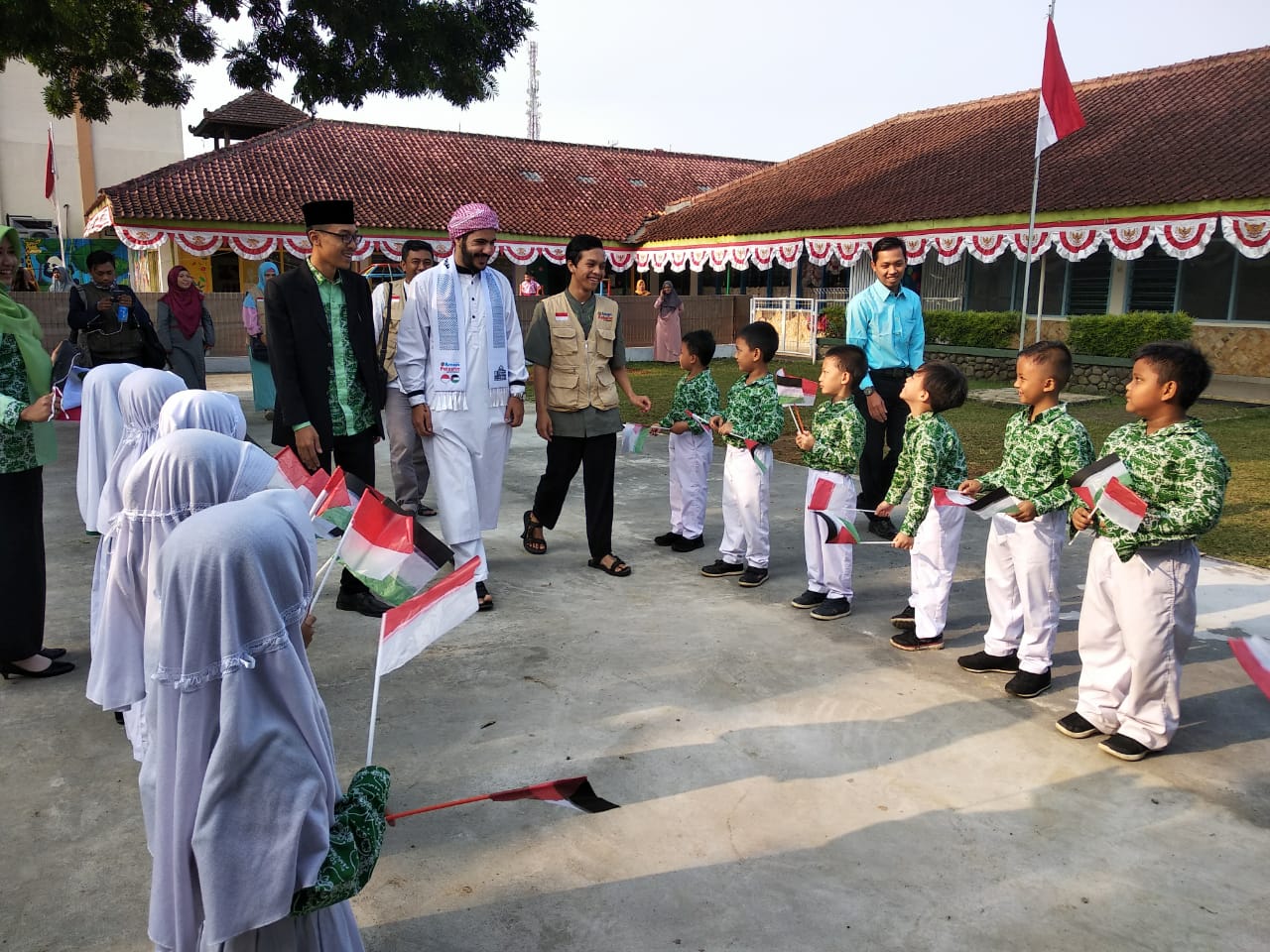 Kamis, satu hari menjelang peringatan HUT RI ke-73 (16-08-18), SDIT Kemuning kedatangan tamu istimewa Syekh Barkat G.G Assamiri, seorang Imam Masjid Gaza Palestine.